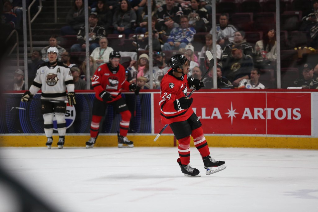 “It was just a simple play—a bit of a puck race with Bear and Hardy going back,” says Todd Nelson, Hershey Bears head coach. “They had two guys in the battle behind the net, and their guy came out with it. Ethan was caught in between as their guy looked to walk out, and he just threw it toward the net. It took a bounce right to the guy in front. It wasn’t a set play, just a fortunate bounce for them. But credit to them—they made it happen with their hustle.”