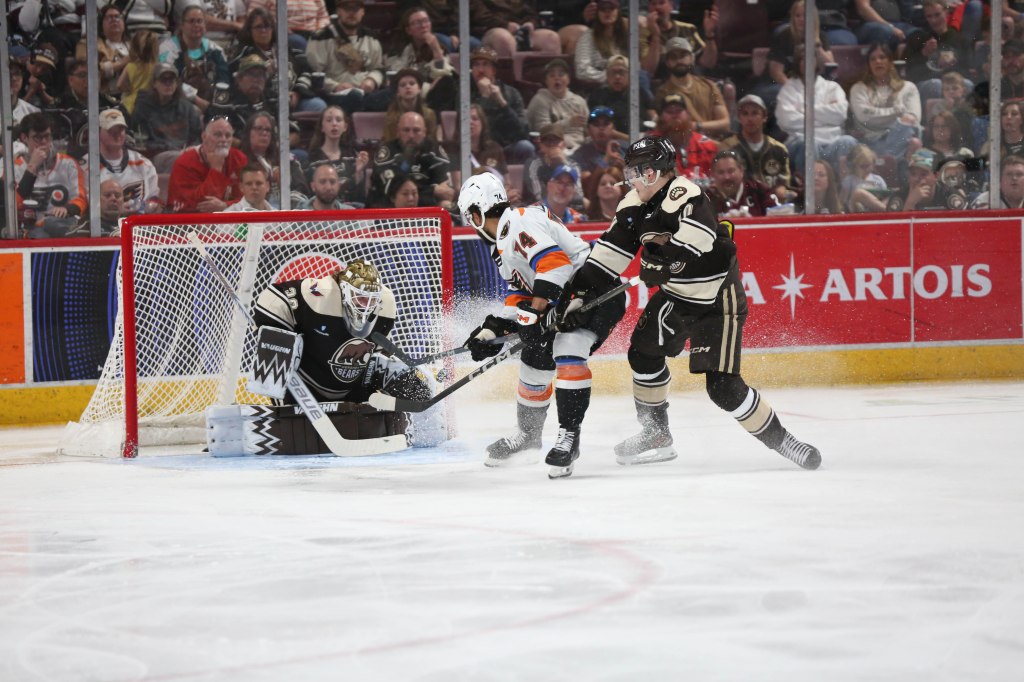 After both teams had breakaway chances denied, Hershey’s Riley Sutter received a double minor for high sticking at 11:25 of the second period. Lehigh’s power play unit failed to capitalize, as the Bears penalty killers continued to rise to the occasion.