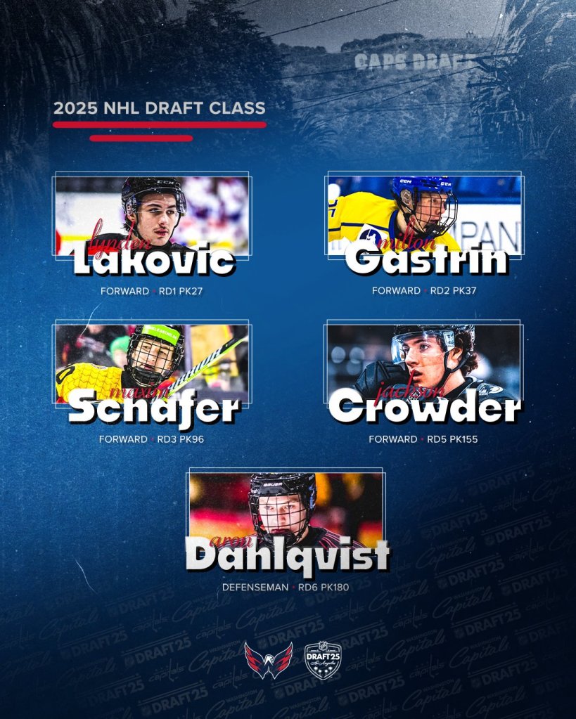- Lynden Lakovic, LW, Moose Jaw, 27th Overall: With their first round pick, Washington took winger Lynden Lakovic out of Moose Jaw from the WHL. The fact that Lakovic was at 27 was a surprise to many- most final mock drafts had Lakovic going in the 15-18 range, and most scout rankings also had the talented winger around those spots. However, likely thanks to some other prospects falling (including talented Swedish winger Victor Eklund, who the Islanders took at 16, likely where they could have taken Lakovic if Eklund hadn’t fallen there) and some other teams taking need, the talented 6’4 Lakovic is now a Capital. Under potential new CBA rules as well, he could be a Bear as early as next year, making him a key prospect to watch for Bears nation.