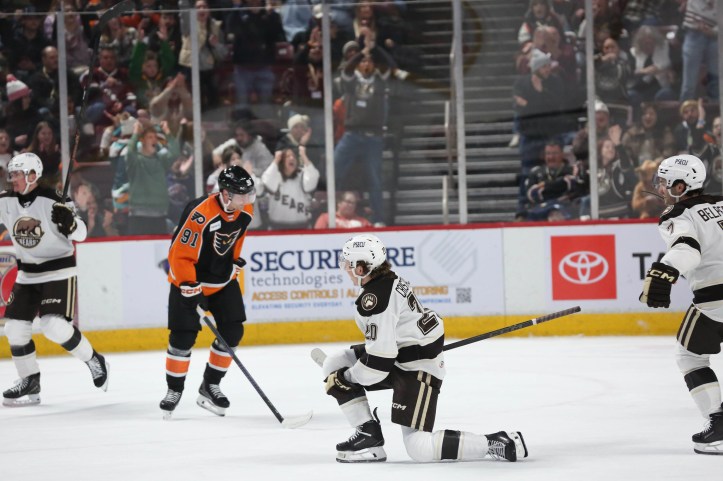 - Hershey also got their taste of the usual Lehigh Valley physicality this weekend. We know the Phantoms like to toe the line when it comes to throwing the body, and Ilya Protas got the worst of it tonight. He had Bear Nation holding their breath when he went off injured late in the first.