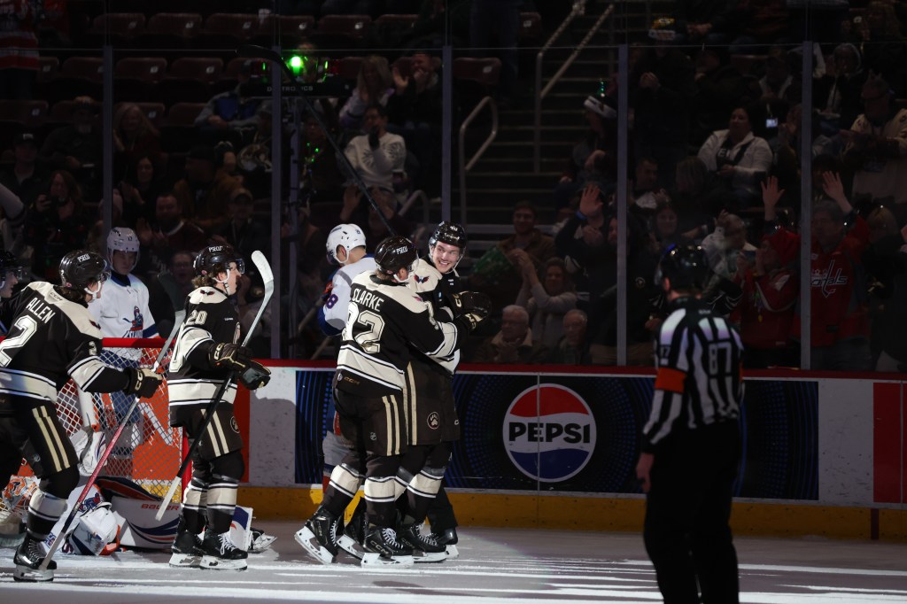 On Saturday night at GIANT Center, it was a Grant Cruikshank rebound goal that got the Bears on the board early. Cam Allen, who scored the opening goal of last Saturday’s 4-0 rout of Charlotte, fired a shot at Bridgeport goalie Henrik Tikkanen. Tikkanen made the save with his leg pad, but set up Cruikshank perfectly to fly in for the loose puck and finish it.